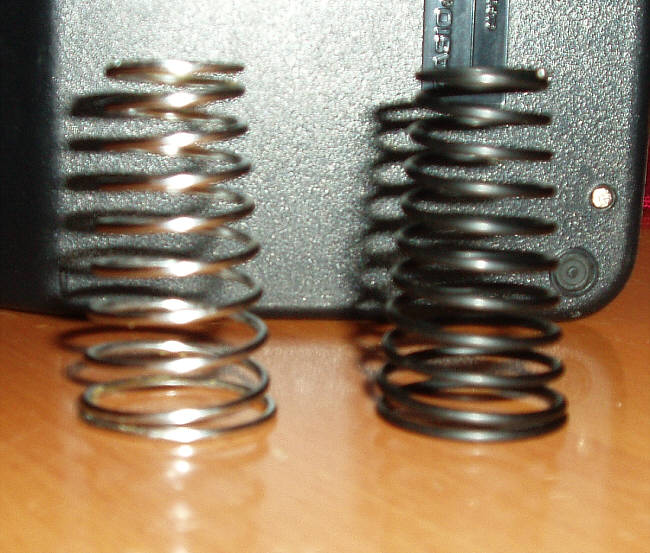 Um dem Subchassis eine optimale Federung zu gewährleisten, war es in meinen Augen erforderlich die vorhandenen Federn gegen härtere auszutauschen. Die bis zu diesem Zeitpunkt eingebauten Phonosophie-Federn waren schon härter als die originalen Thorens-Federn, trotzdem war durch die umfangreichen Subchassisdämpfungsmaßnahmen eine der drei Federn an ihre Belastungsgrenze angekommen. Die Belastungsgrenze konnte man dadurch erkennen, dass von der Feder die dem Tonarm am nächsten ist, die einzelnen Federwindungen sich teilweise schon berührten. Dank Andreas ("andreas vom wilden westen" aus dem AAA-Forum) kam ich, ohne Stress und sehr günstig, zu Linn LP 12 Subchassisfedern. Sie hatten, wenn ich es noch richtig in Erinnerung habe, irgendwas um die 12,- € gekostet. Man kann sich diese Federn auch direkt aus Großbritannien besorgen, dort liegt der Preis ungefähr gleich. Wenn man im AAA-Forum die Suche bemüht, kann man dort entsprechende Bezugsinformationen finden.