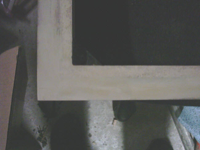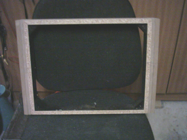 Die Zarge habe ich vom Prinzip genauso aufgebaut wie den Zargenboden... in Sandwichbauweise mit Bleischrot-/Quarzsandfüllung. Ich habe als Basis, man kann auch sagen als Grundgerüst, die originale Zarge genommen. Die originale Zarge, aus 15 mm Spanplatte, war in einem erbärmlichen Zustand. Mit einer Holzimitatfolie beschichtet, welche schwarz lackiert wurde. Dieser schwarze Lack ist an der linken und rechten Seite zu 75 % abgeblättert gewesen. Holzfarbe hält halt schlecht auf Plastik. Dazu kamen noch einige Macken. Kurzum, es war kein Verlust die originale Zarge als Basis zu verwenden. Da die Zarge in Sandwichbauweise verwirklicht werden sollte, hatte ich auch keine Bedenken, dass sich das Benutzen der originalen Zarge negativ bemerkbar machen könnte. Die Materialstärke der originalen Zarge ist ja auch 15 mm dick. Der Klopftest am fertigen Zarge bestätigte mich. Er klang außen, auf das MDF geklopft, genauso wie innen, auf die Spanplatte geklopft. Obendrein konnte ich mir dadurch die Arbeit erleichtern, da die originale Zarge alle Aufnahmepunkte für das Chassis schon montiert hat. Da der Zargenboden ziemlich dick wurde, musste die Zarge etwas höher bauen. Sonst hätten die Proportionen nicht mehr gepasst. Für die Optik wollte ich die neue Zarge mit Nußbaum furnieren, dunkel beizen und dann mit Osmo Parkettlack und Bienenwachs behandeln.